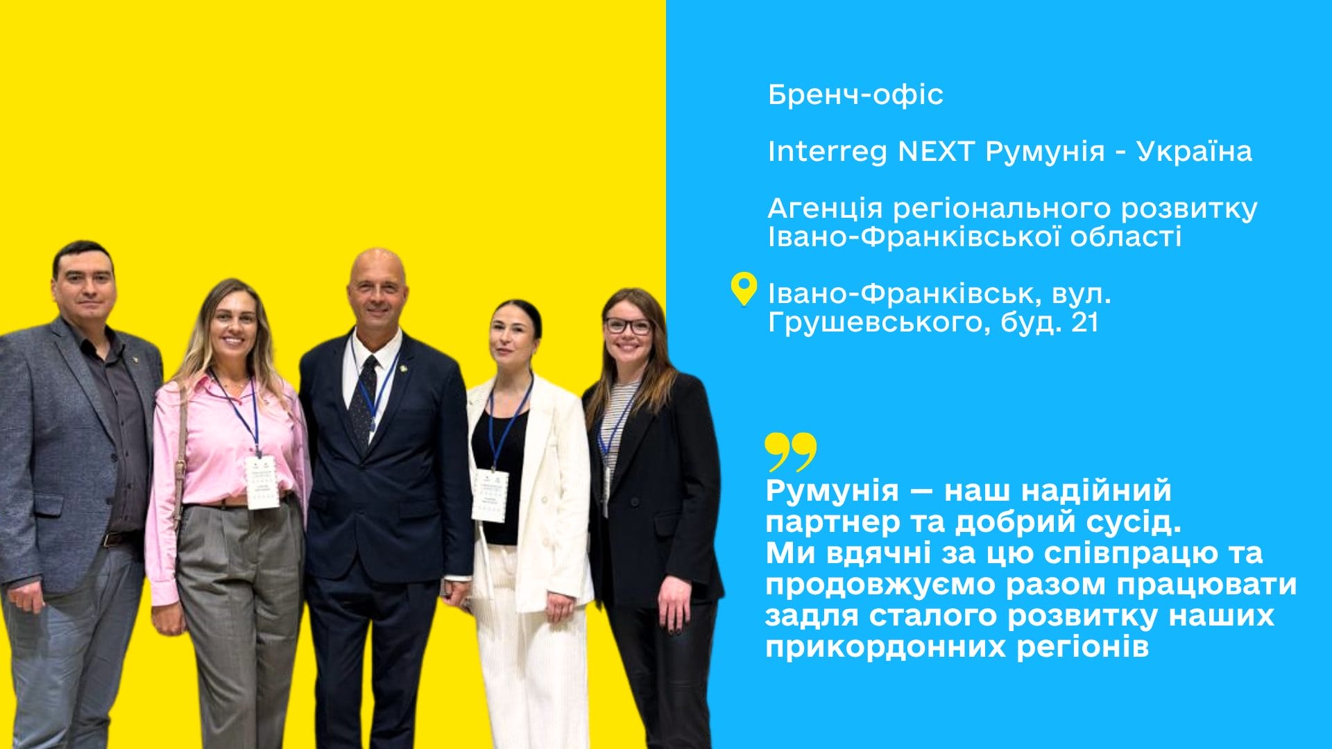 “Бренч-офіс програми Interreg NEXT Румунія — Україна знову на базі Агенції регіонального розвитку Івано-Франківської області! Ми пишаємося продовженням партнерства, що бере початок з 2023 року.
