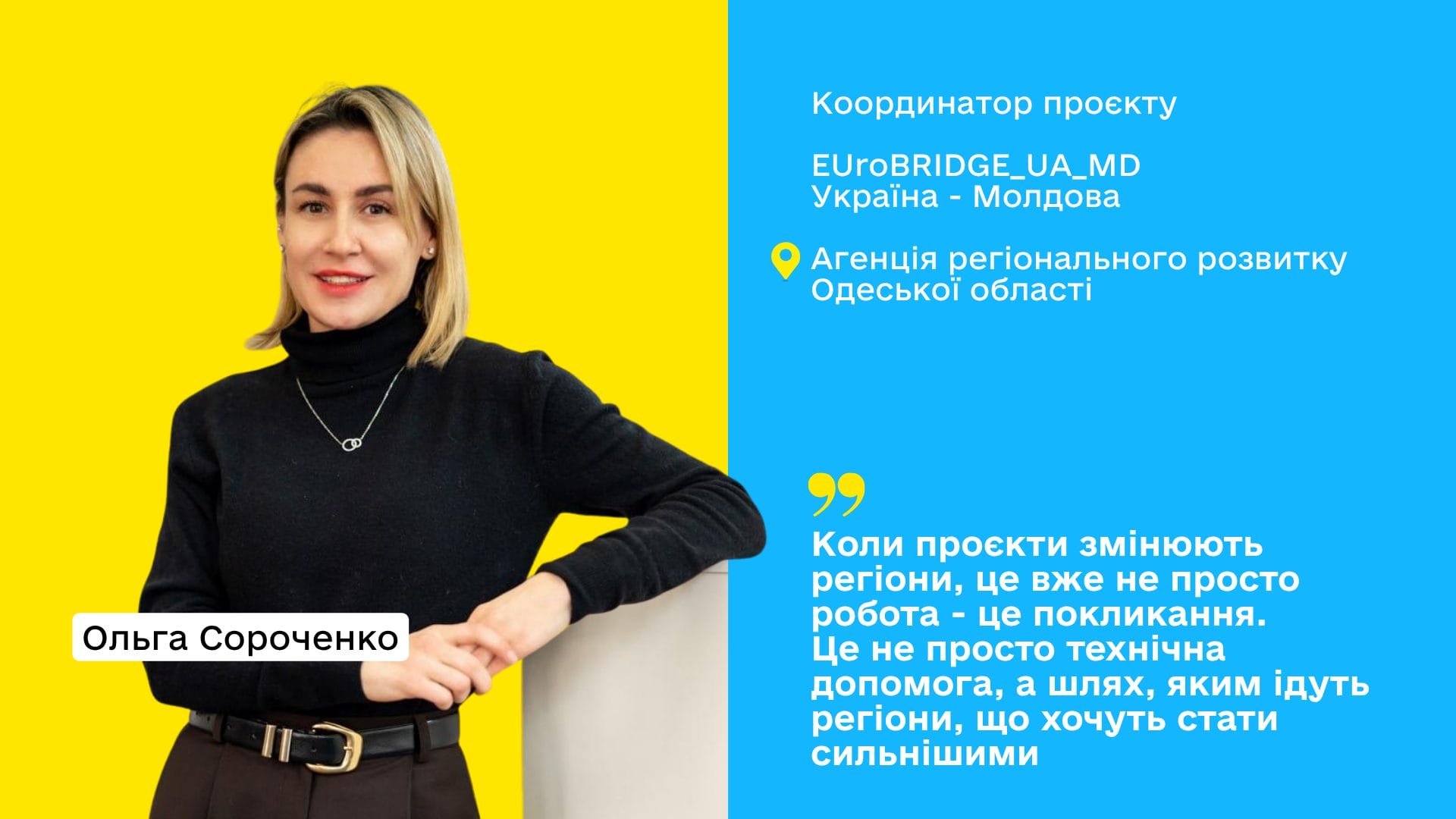 У ньому є місце для співпраці, людяності й бачення, як змінюється світ, коли країни починають не змагатися, а вчитись одна в одної. Саме тому мені важливо бути частиною команди EUroBRIDGE_UA_MD, яка створює не лише проєкти, а й мости довіри між Україною та Молдовою”
