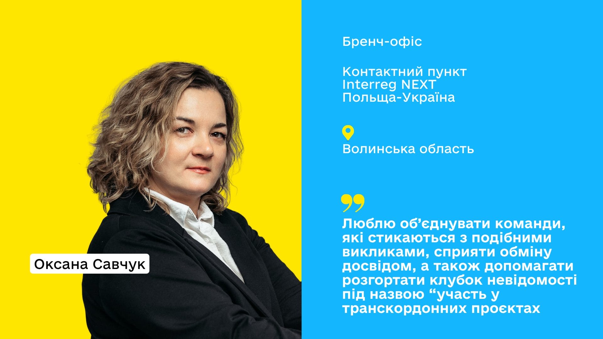 «Люблю об’єднувати команди, які стикаються з подібними викликами, сприяти обміну досвідом, а також допомагати розгортати клубок невідомості під назвою “участь у транскордонних проєктах»